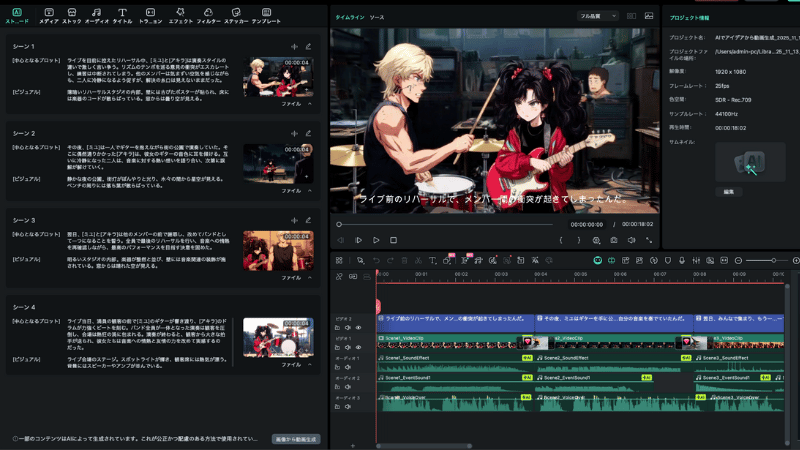 - AI音楽生成: 動画の雰囲気に合わせた著作権フリーBGMを自動作曲